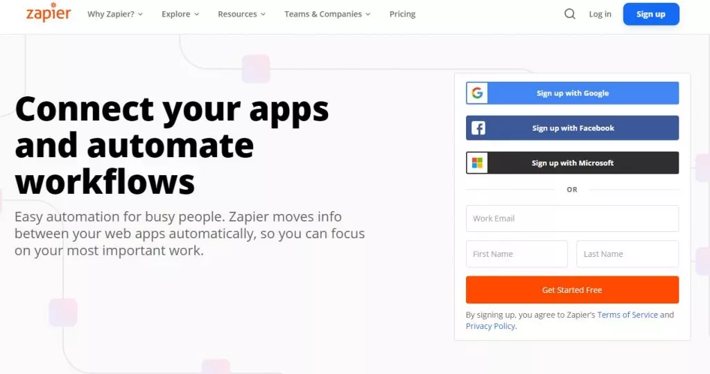 Zapier excels at focusing above the fold as well.